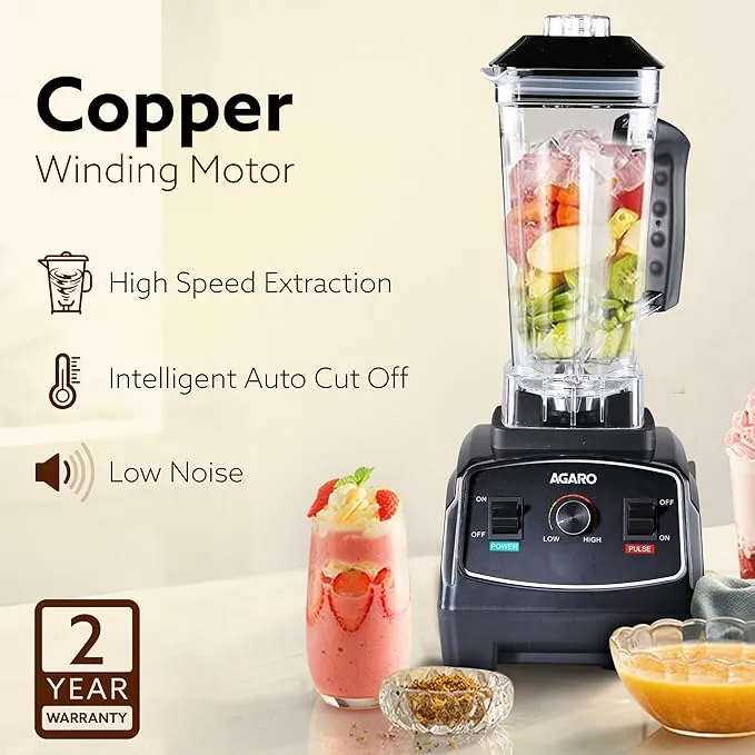 AGARO Grand Professional Blender/Grinder/Mixer, 2000 watts, 2 Litres BPA Free Jar, Commercial heavy duty blender, High Power & Speed Blender, 100% Copper Motor, Pulse Function, 8 Leaf SS Blade